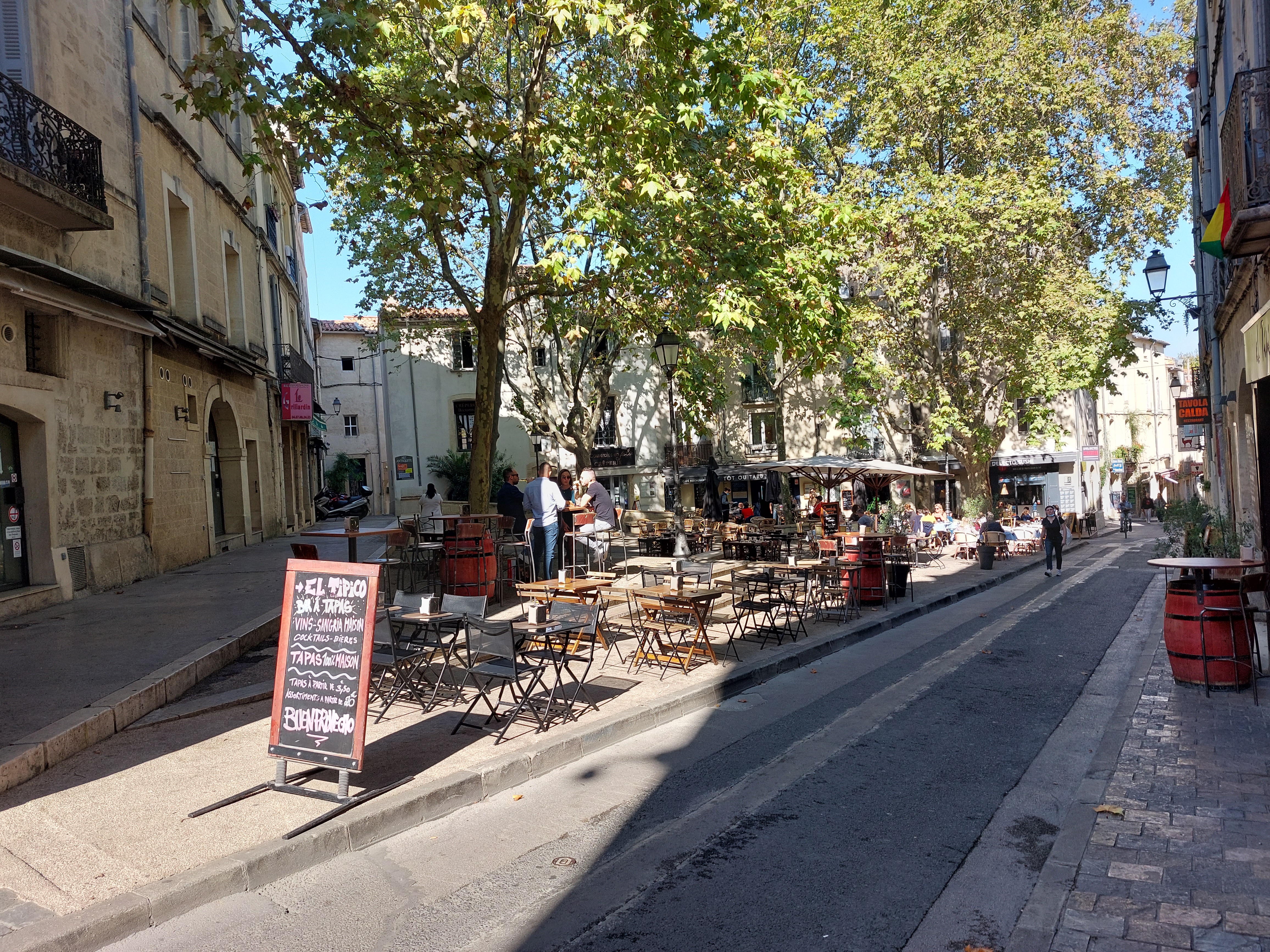 Montpellier, first. A large town / small city (about a quarter million) which is, architecturally, 87% small restaurants, and, demographically, 87% students, retirees and – strangely – doctors.