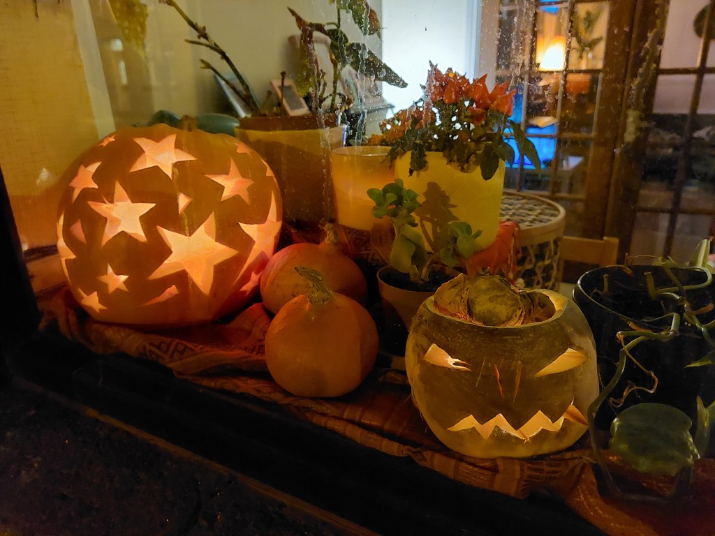 Carving pumpkins, while a very wholesome tradition in its own right, is not how the Old Time Irish Crones celebrated the thinning of the veil at Halloween. We carved turnips (I count myself amongst the OTIC’s) which is *far harder* to do, on account of the turnips tough, woody consistency, but the results are much more terrifying. Turnips also shrivel and rot more quickly than their North American cousins, which gives you twice as much spook for your buck…